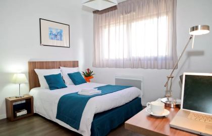 "Résidence type hotel au calme, propre et bien équipé. Logement petit mais fonctionnel pour une famille de 4"